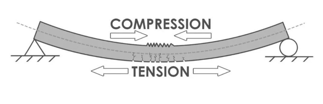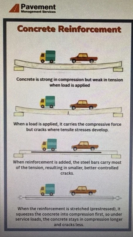 Steel reinforcement does not remove tensile forces. It gives them a safe path, carrying tension after the concrete cracks and keeping crack widths under control.